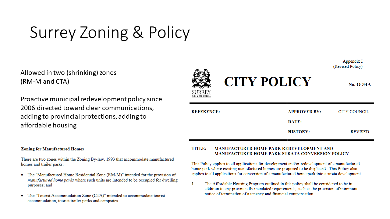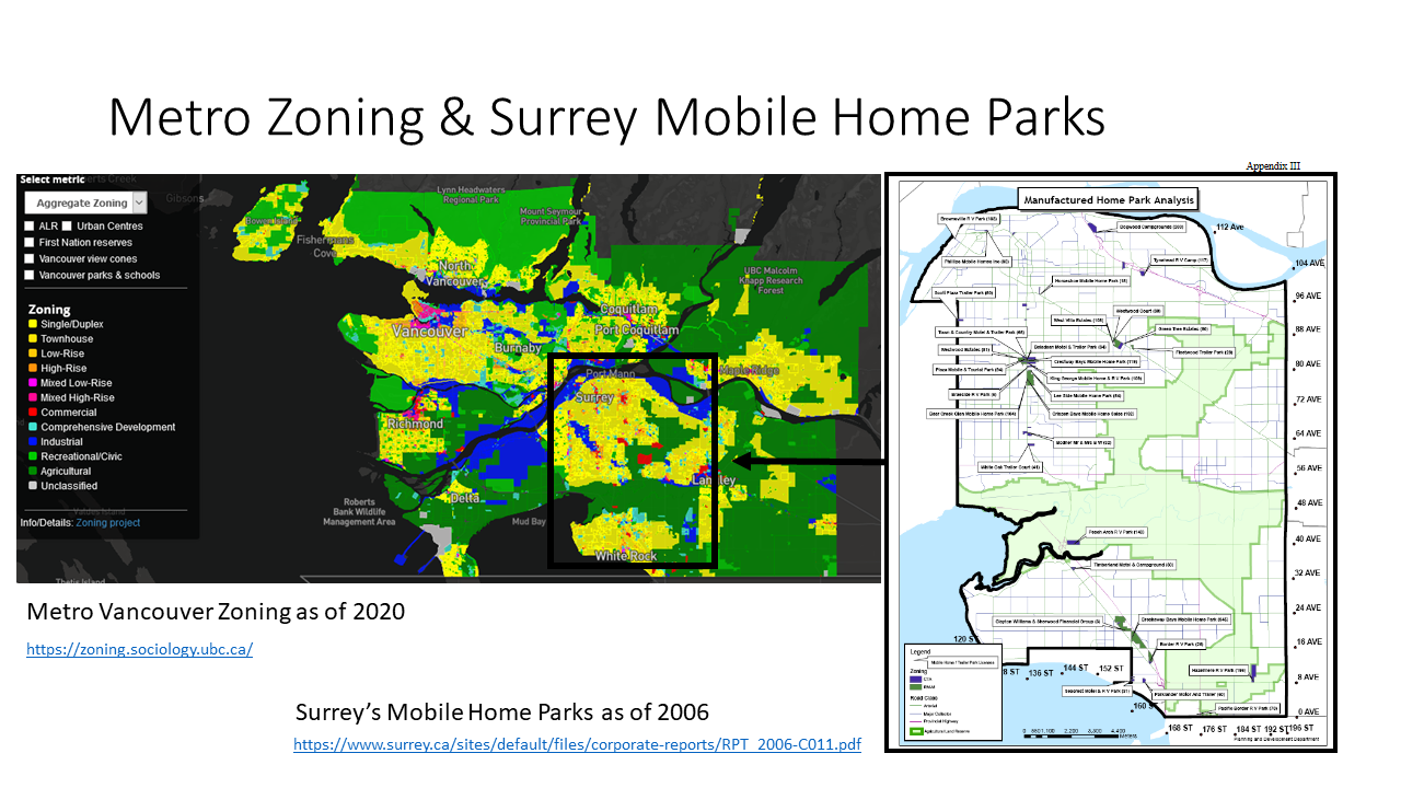 Esther also wrote about how mobile homes get rezoned for development and zoned out of municipalities altogether, and zoning is like my favourite topic ever, so I took the opportunity to show off our integrated Zoning Map of Metro Vancouver and highlight a City Council report on Mobile Home Parks, Zoning, and Redevelopment in Surrey.