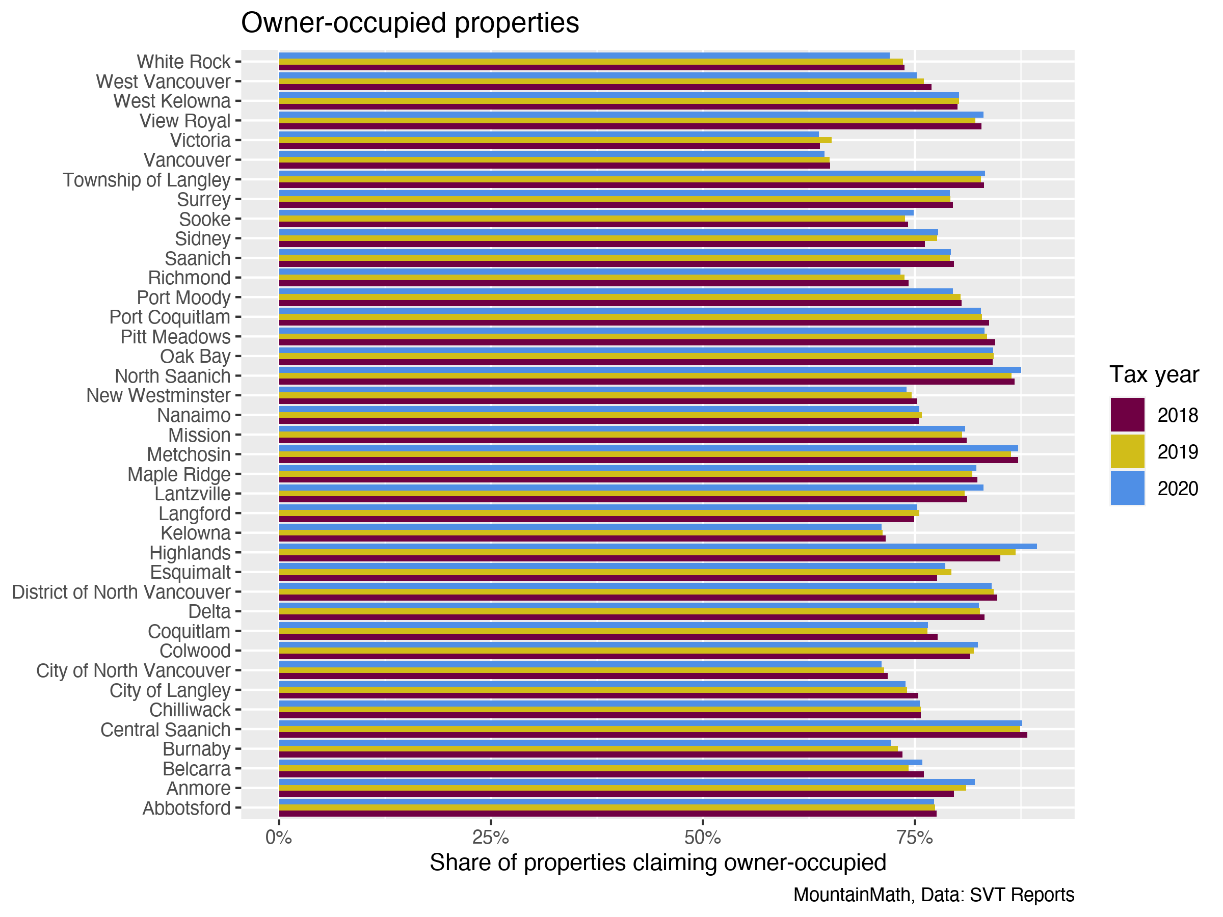 We now have three years of Speculation and Vacancy Tax data for BC, demonstrating generally less than one percent of properties pay the tax in most municipalities. We play around with the data we scraped from files released by the BC government to show