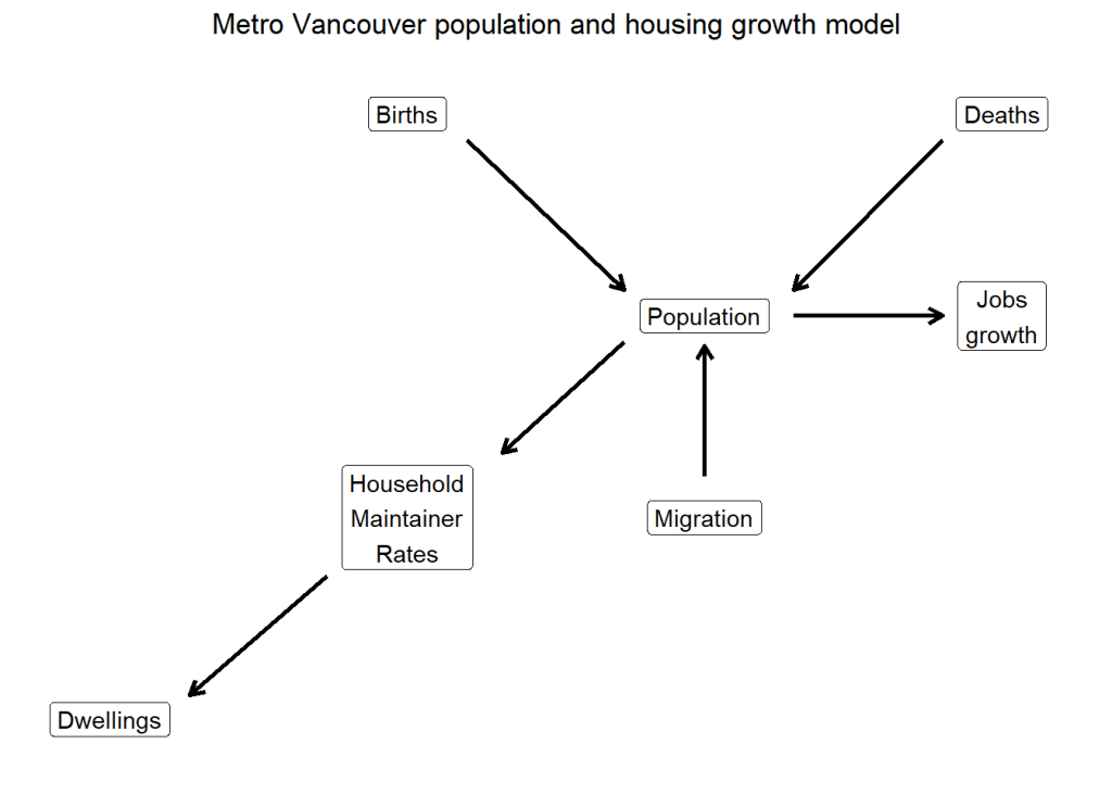 As an example we take the Metro Vancouver Population and Housing projections, which implicitly builds on the following model.