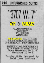 So let’s compare our two focus tower developments, the 1970 12-storey rental apartment on 7th and Alma and the currently under construction 14 storey MIRHPP at Broadway and Alma!