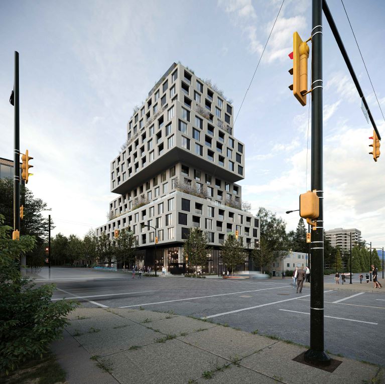 That political shift came faster than anticipated! The project was put on hold after the open house in 2017. Taking advantage of the new MIRHPP policy (approved by City Council in November 2017 and taking applications beginning in January 2018), the developer returned on November 15th, 2019 applying for a rezoning of the existing C-2 strip mall and adjacent vacant RS-1 lot to build a 14 storey rental building with 20% of the units below market in perpetuity. The City scheduled another open house for February 13th, 2020. With only minor interruptions due to the pandemic, the process continued on, with changes to the proposal made in response to the open house by May 2020. An on-line public hearing for the rezoning was scheduled for October 27th, 2020, but took two extra days because of the long list of speakers, many vehemently opposed (by contrast, the owner of True Confections spoke in favour). The rezoning passed on October 29th, 2020, including 153 secured rental apartments (20% rented below market at rates well below those on offer at 3707 W. 7th). Notably the rezoning was approved under a different council than passed the MIRHPP policy, with an uncertain-seeming, but ultimately decisive 7-3 margin. Overall it took almost a year to get site-specific zoning in place closely tailored to the proposed building parameters, not counting the multiple years of planning and time to do the initial design work and negotiate with staff through the pre-app phase.