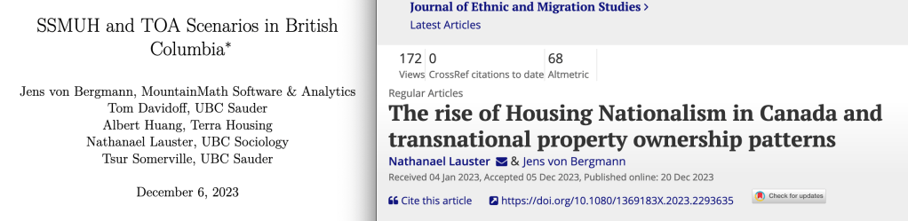 Jens and I also worked together on a paper entitled “The Rise of Housing Nationalism in Canada and Transnational Property Ownership Patterns” just published in the peer-reviewed Journal of Ethnic and Migration Studies (JEMS) at the end of December. There’s some nuance to the argument, but a basic idea is that blaming foreigners for our housing problems didn’t help much and contributed to a host of new problems. Here’s the abstract: